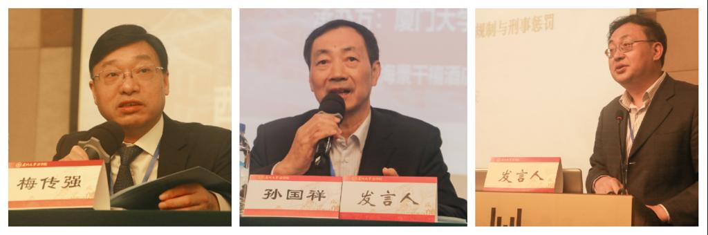 中国刑法学研究会副会长、西南政法大学法学院院长梅传强教授、厦门市委政法委委务会成员、厦门市法学会党组成员、副会长吴少鹰、厦门大学法学院副院长郭春镇教授在开幕式上致辞。南京大学法学院孙国祥教授、苏州大学王健法学院李晓明教授、华东政法大学刑事法学院卢勤忠教授、最高人民法院刑事审判第四庭副庭长、审判员(挂职)、中国人民大学法学院田宏杰教授出席开幕式。会议由厦门市法学会刑法学研究会会长、厦门大学经济犯罪研究中心主任、厦门大学法学院李兰英教授主持。